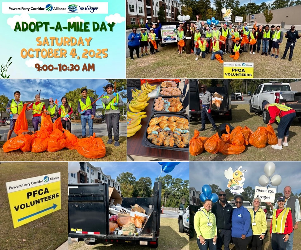 (COBB COUNTY, GA) The day started out with dreary skies, but the weather did not dampen the mood for 18 enthusiastic volunteers who turned out on Saturday, October 14 for the Powers Ferry Corridor Alliance’s (PFCA) Fall Adopt-A-Mile Cleanup. The event was held in conjunction with Keep Cobb Beautiful at the Kroger Fuel Center parking lot at 1310 Powers Ferry Rd. The volunteers fanned out along Powers Ferry at Terrell Mill Rd. to pick up trash, and In just 90 minutes, collected enough litter to fill 40 trash bags.